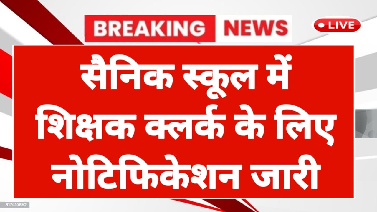 सैनिक स्कूल में शिक्षक क्लर्क चपरासी के लिए नोटिफिकेशन जारी मांगे आवेदन UP Sainik School Teacher Notificacion 2025