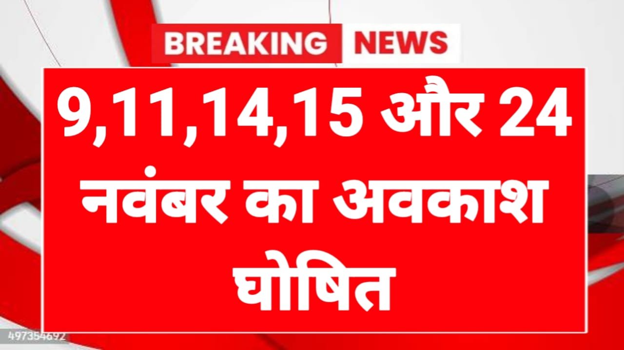 9,11,14,15 और 24 नवंबर का अवकाश घोषित, जाने कहां-कहां बंद रहेंगे स्कूल School Holidays 2025 Latest News