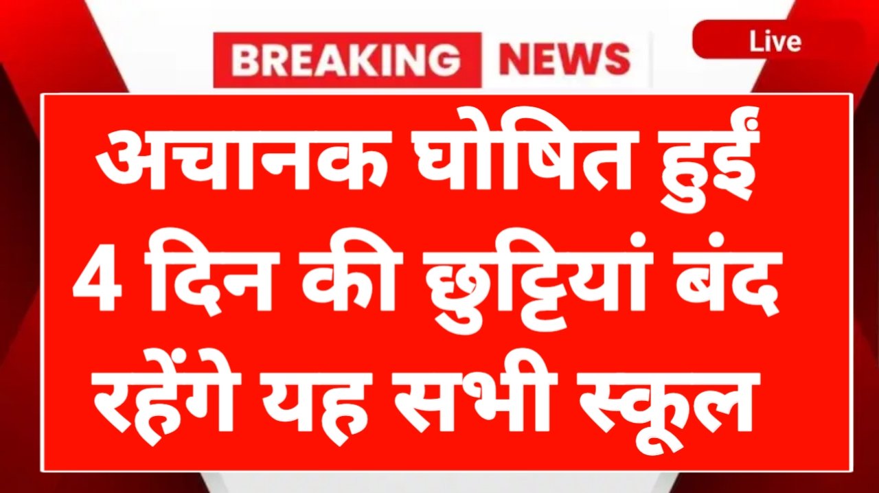 UP School Holidays: स्कूलों में अचानक घोषित हुईं 4 दिन की छुट्टियां, 3 से 6 नवंबर तक बन्द रहेंगे स्कूल